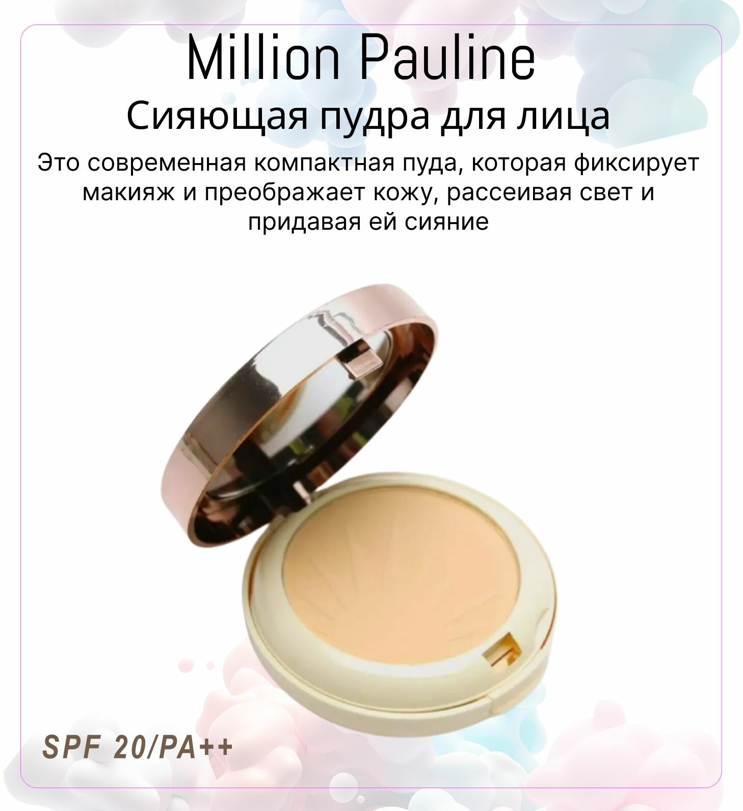 Million Pauline Сияющая пудра хайлайтер для лица 01 с зеркалом и спонжиком SPF20+PA++ 24 гр интересное: