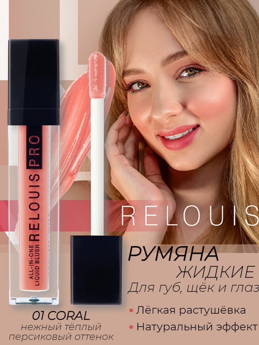 Купить Румяна для лица `RELOUIS` `RELOUIS PRO` ALL-IN-ONE LIQUID BLUSH жидкие тон 01 coral
