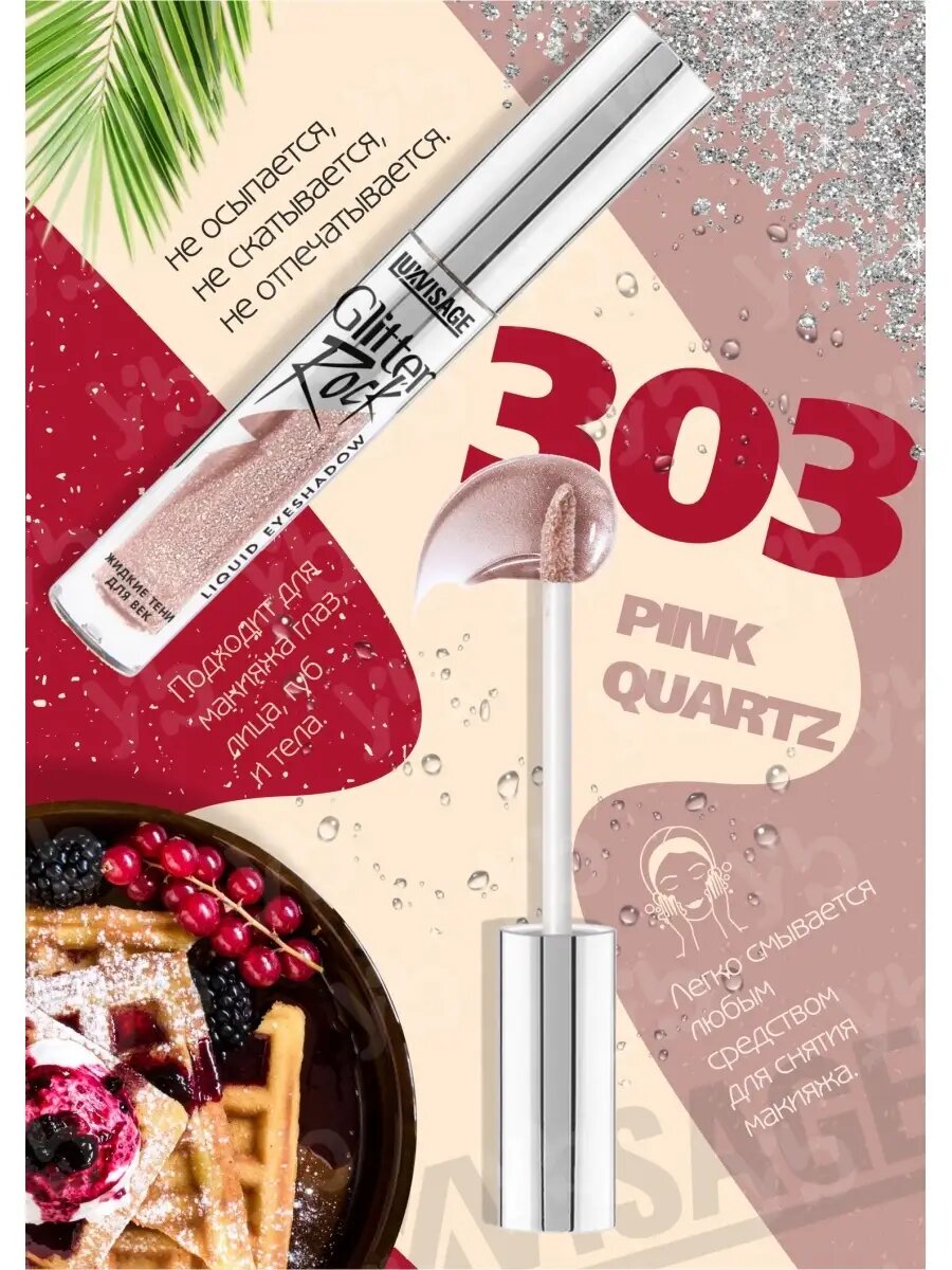 Ниже Вы можете прочитать отзывы на Тени для век жидкие GLITTER ROCK Тон 303 розовый кварц, ознакомится с подробными характеристиками, посмотреть интересные обзоры и фотографии на Тени для век жидкие GLITTER ROCK Тон 303 розовый кварц.