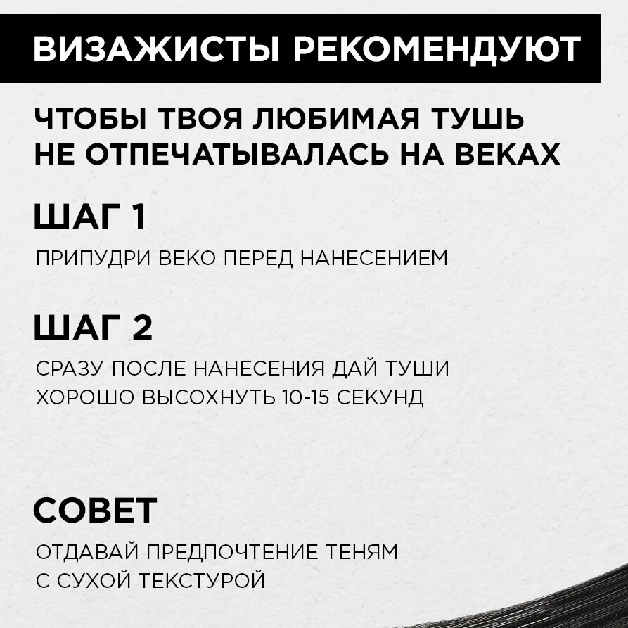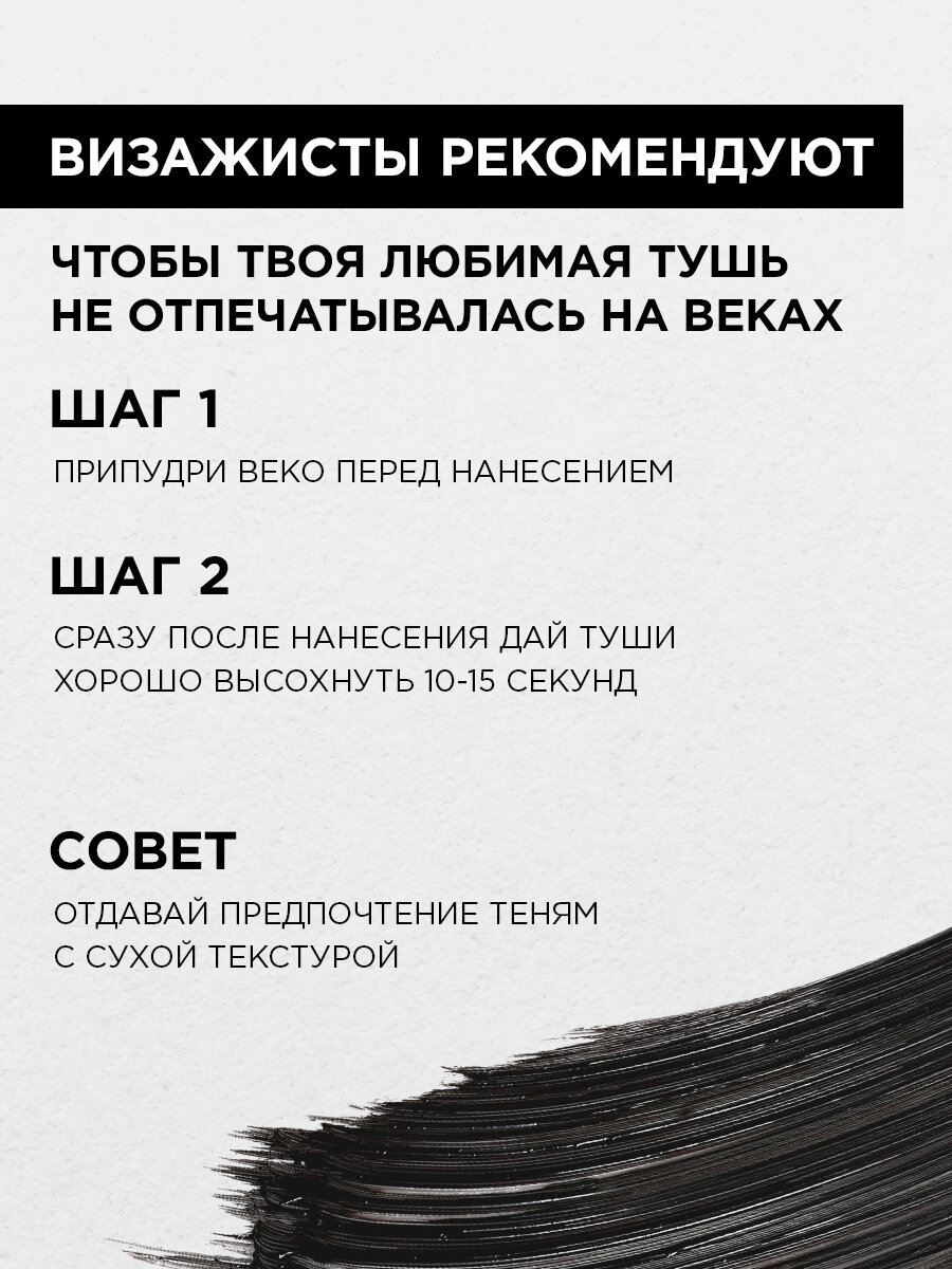 | Способ применения | 1. Приподнимите реснички от самых корней, используя фронтальную часть щеточки. 2. Используйте боковую часть щеточки для разделения ресничек, достижения объема и удлинения. |