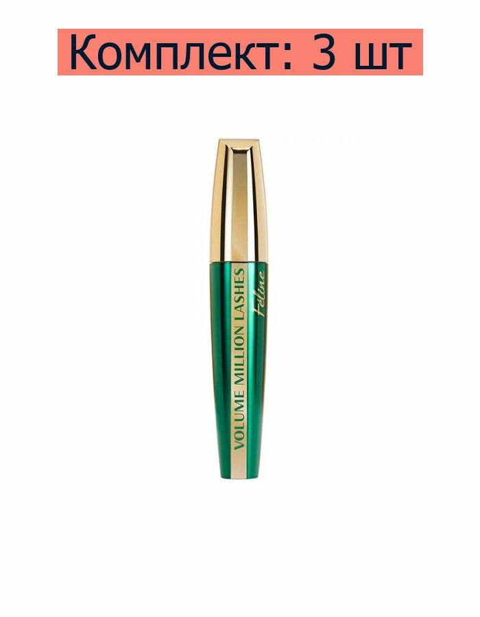Купить L'Oreal Тушь для ресниц Объем миллиона ресниц Feline "Взгляд кошки", экстрачерная, 3 шт