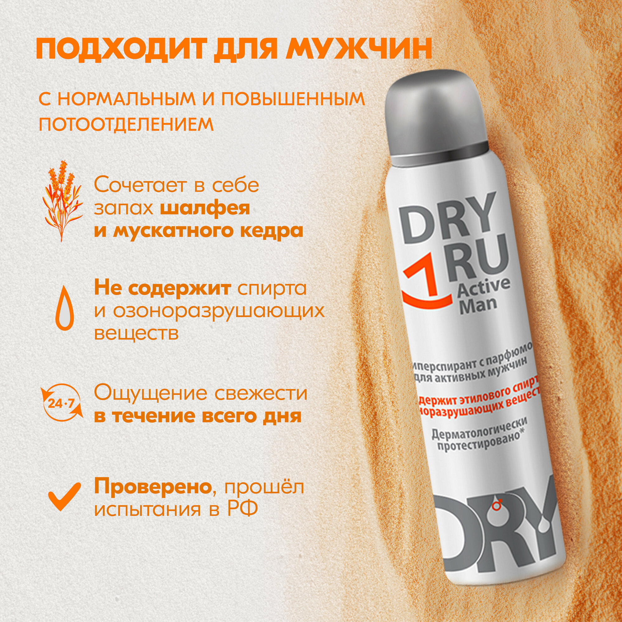 Купить Антиперспирант с парфюмом для активных мужчин Active Man Dry Ru/Драй Ру аэр. 150мл