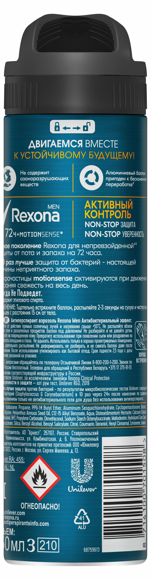 REXONA Антиперспирант-аэрозоль "Активный Контроль" с антибактериальным эффектом 48ч защиты муж., 100 мл