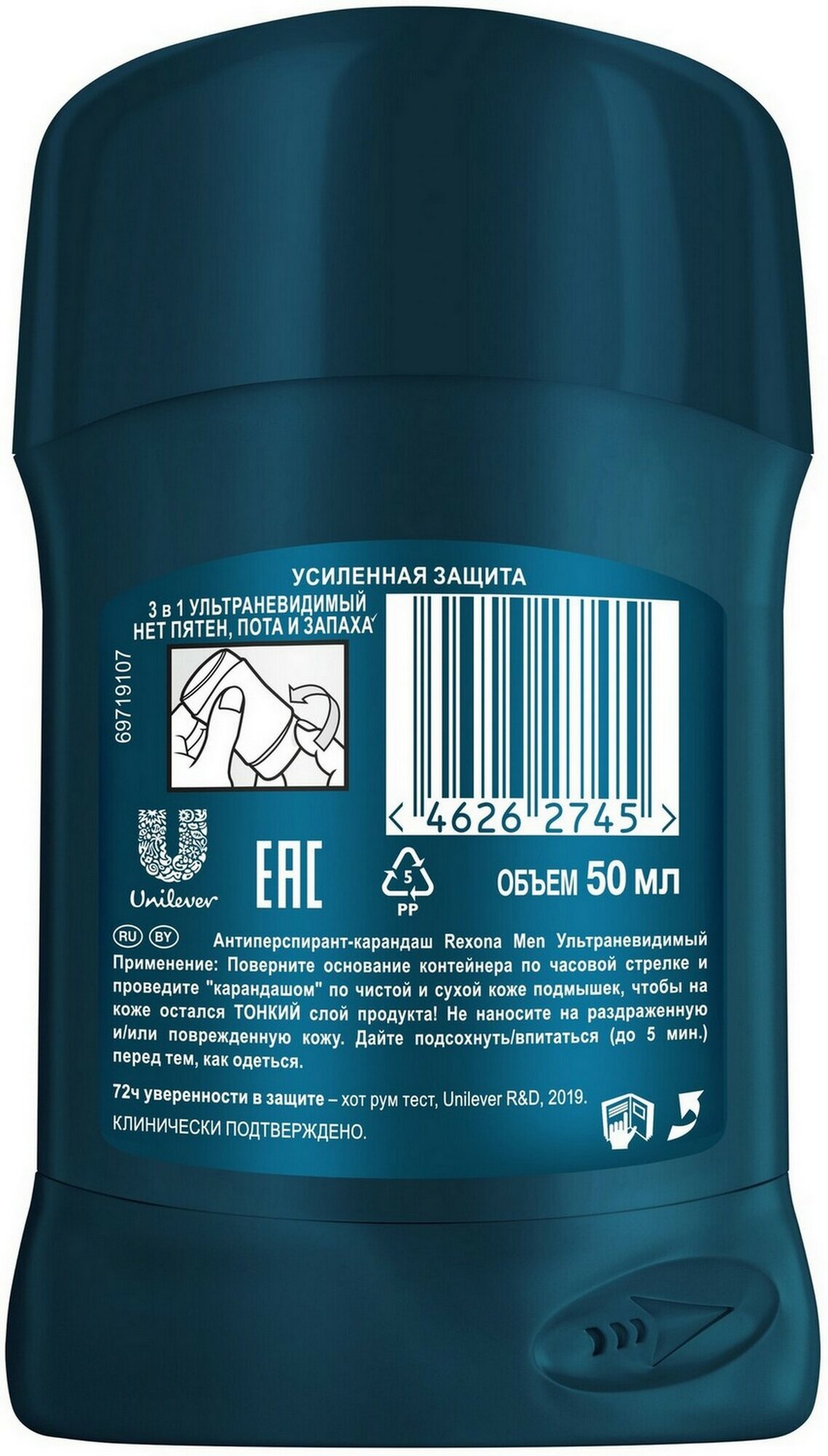Rexona Men ультраневидимый антиперспирант-карандаш 72ч уверенности 3в1 нет пятен, пота и запаха 50 мл