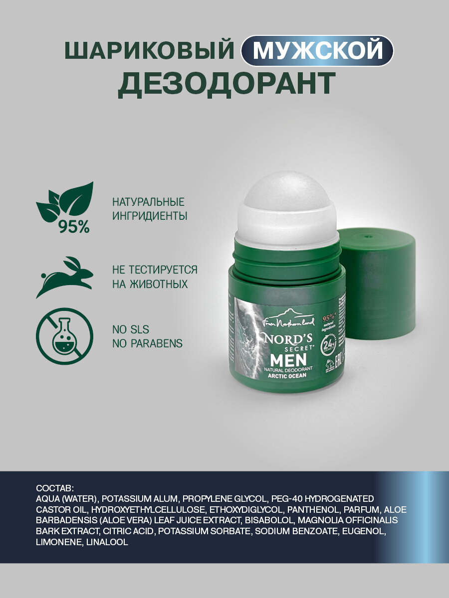 NORD'S SECRET Натуральный Дезодорант антиперспирант роликовый для мужчин северный океан, 50 мл/ Для деликатного ухода за кожей от пота и запаха. интересное: