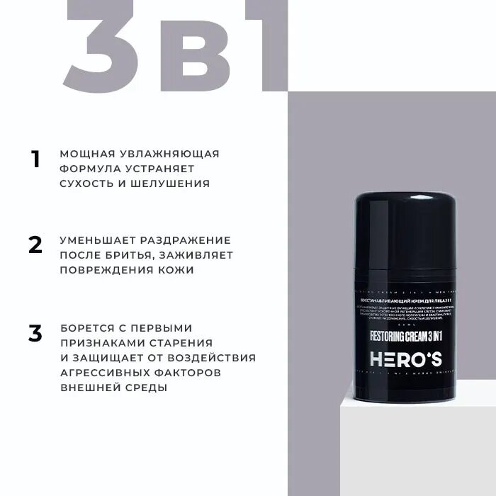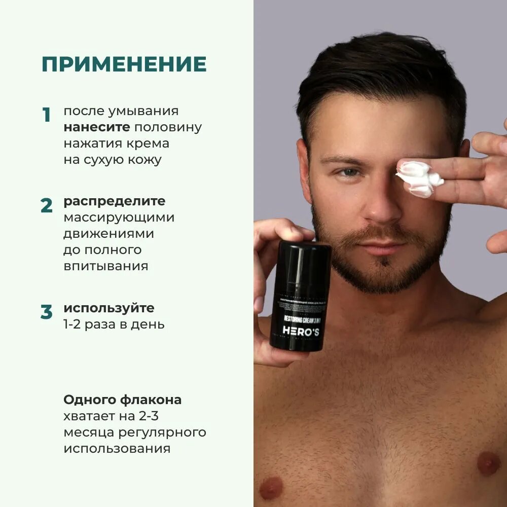HERO'S Увлажняющий крем для лица мужской 3в1 / Косметика для мужчин интересное: