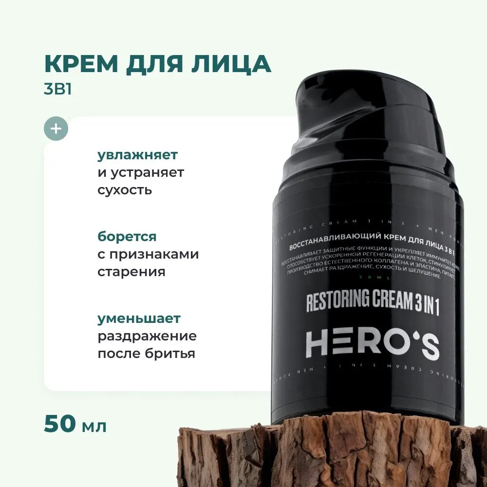 Купить HERO'S Увлажняющий крем для лица мужской 3в1 / Косметика для мужчин
