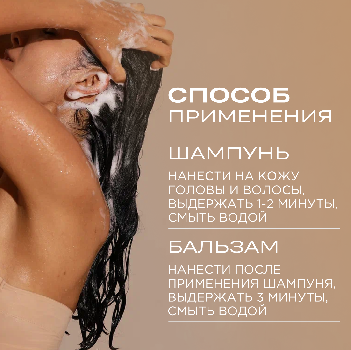 | Способ применения | Мягкими массажными движениями нанесите шампунь на кожу головы и волосы по всей длине, тщательно смойте водой, при необходимости повторите. Нанесите бальзам-кондиционер на чистые влажные волосы, распределите по всей длине, избегая прикорневой зоны, оставьте бальзам на 2-3 минуты, затем смойте водой. На чистые влажные (слегка подсушенные полотенцем) волосы распределите несмываемый кондиционер-спрей по всей длине с помощью спрея-дозатора, либо нанесите продукт руками, предварительно растерев его между ладонями, приступите к укладке. Количество продукта для нанесения зависит от длины, состояния и пористости волос. |