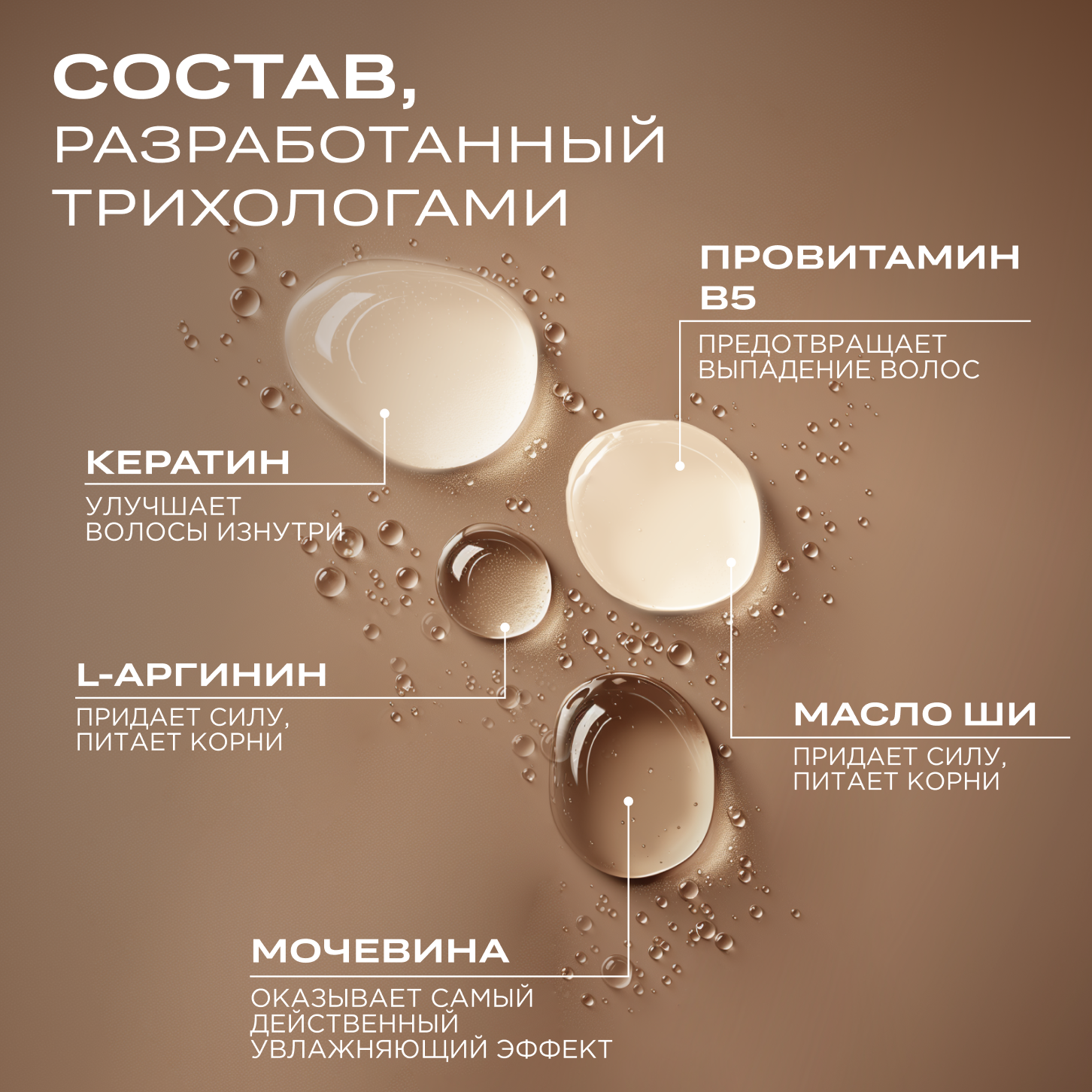 | Активный ингредиент | D-пантенол / аргановое масло / витамин B3 (ниацинамид) / витамин B5 (пантотеновая кислота) / витамин B7 (биотин) / гиалуроновая кислота / кератины / кофеин |