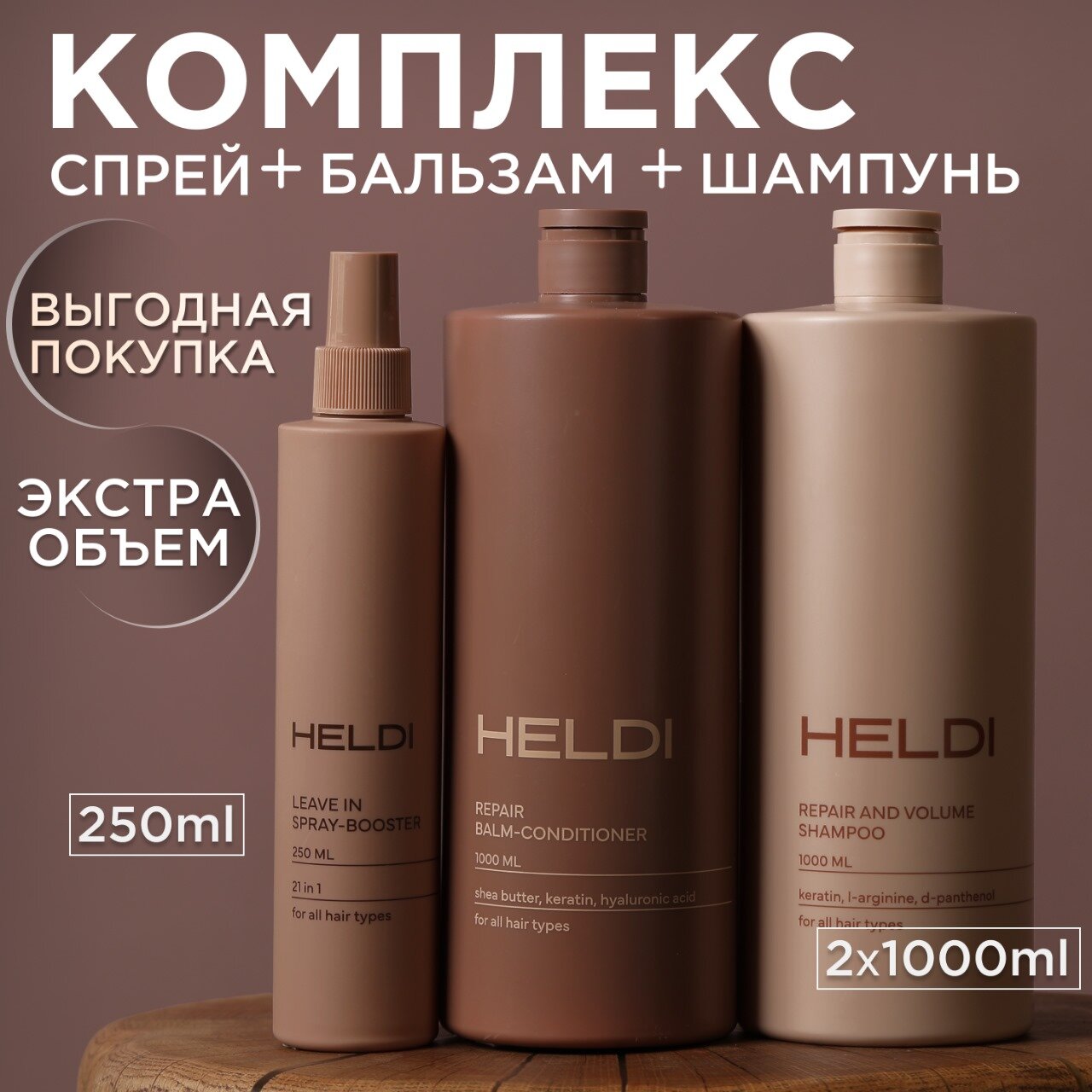 Набор по уходу за волосами, шампунь, бальзам и спрей для волос, HELDI,1000 мл х 2 шт, 250 мл х 1 шт интересное: