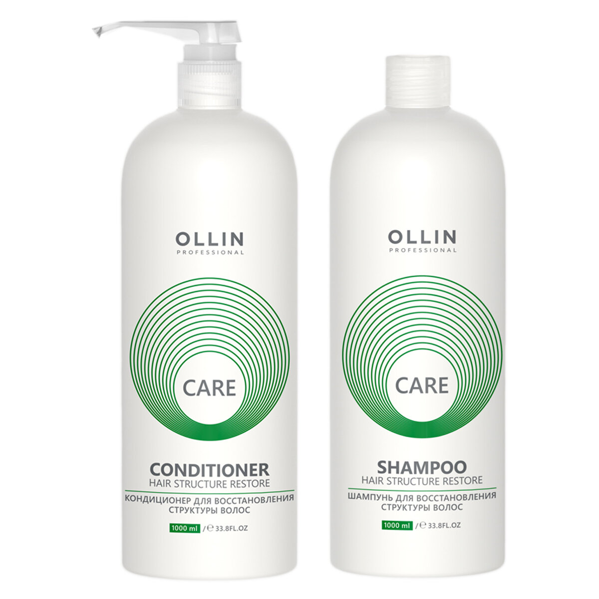 Купить OLLIN Professional набор для восстановления структуры волос CARE RESTORE: шампунь, 1000 мл + кондиционер, 1000 мл + дозатор
