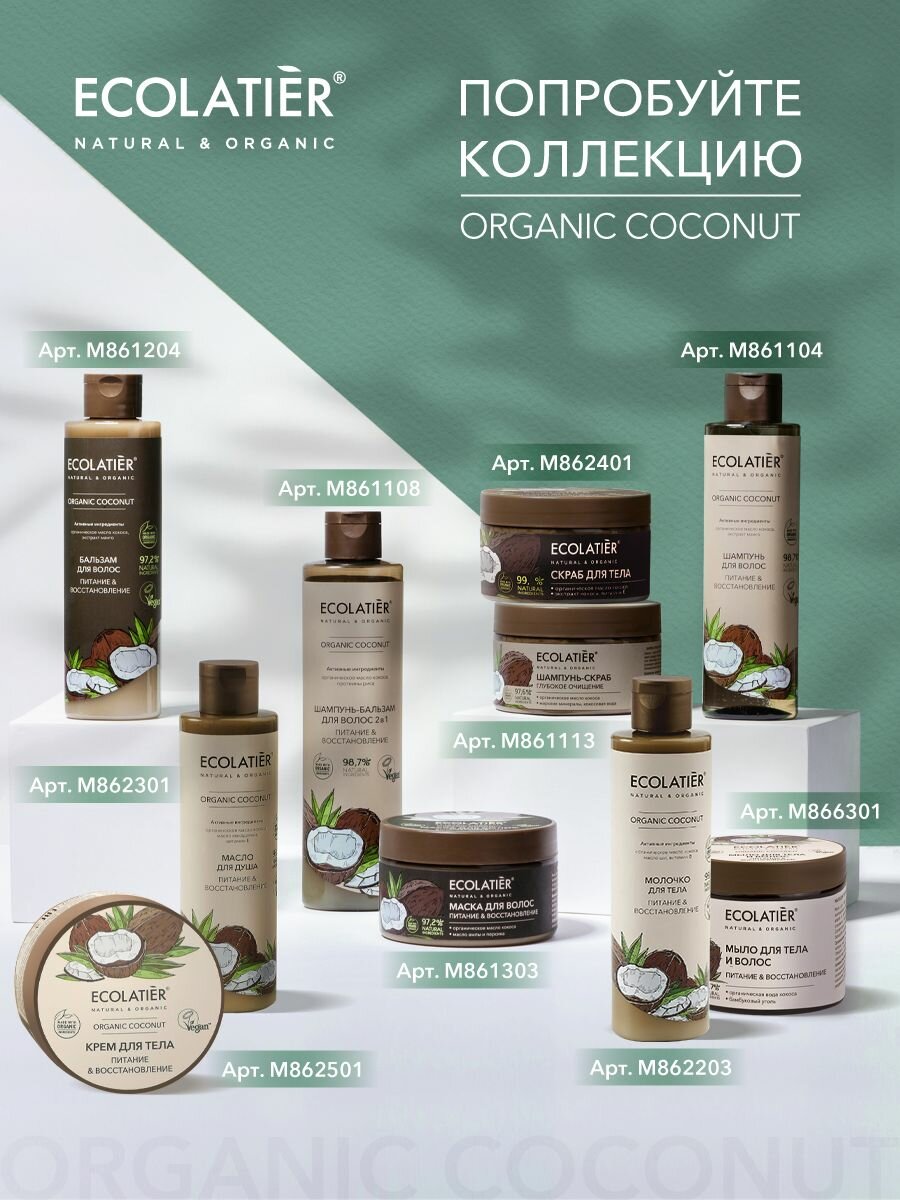 ECOLATIER / Шампунь и Бальзам для волос Питание Восстановление серия ORGANIC COCONUT / 500 мл интересное: