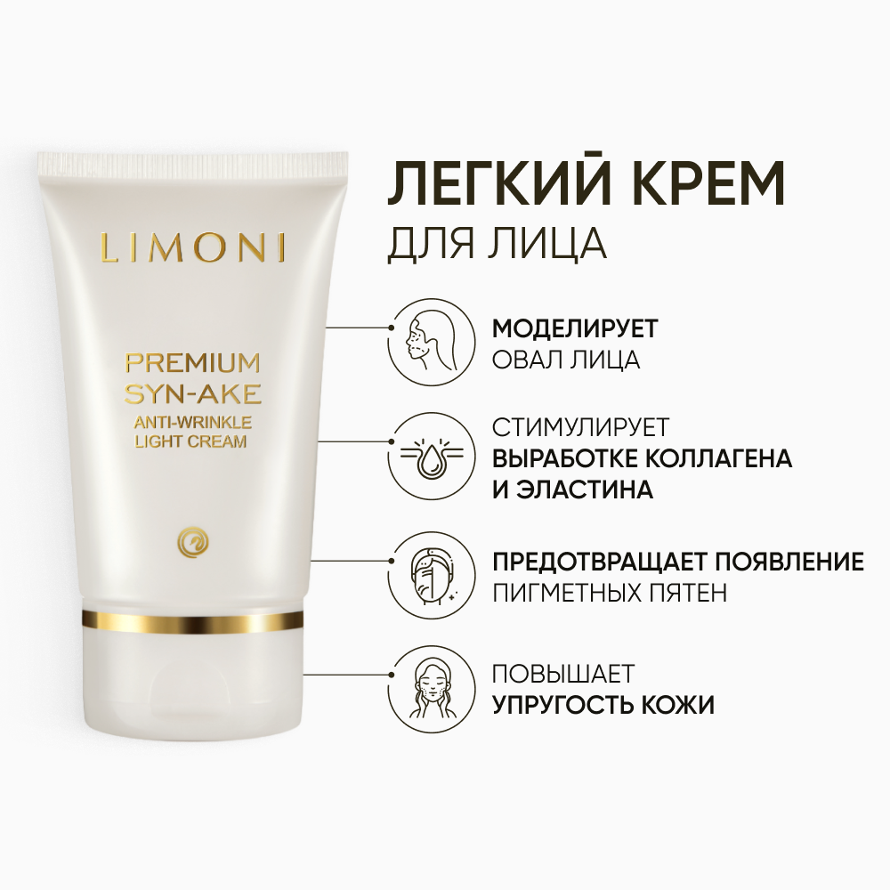Limoni Premium Syn-Ake Anti-Wrinkle Care Set (Набор Cream 50ml+Eye Cream 25ml+Light Cream 50 ml) интересное: