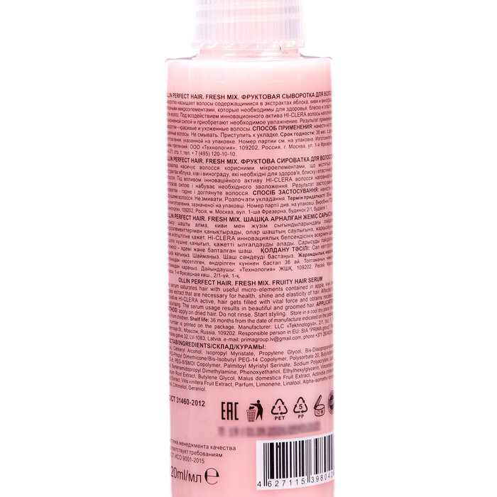 OLLIN PERFECT HAIR Сыворотка для волос увлажняющая фруктовая Fresh Mix 120 мл интересное:
