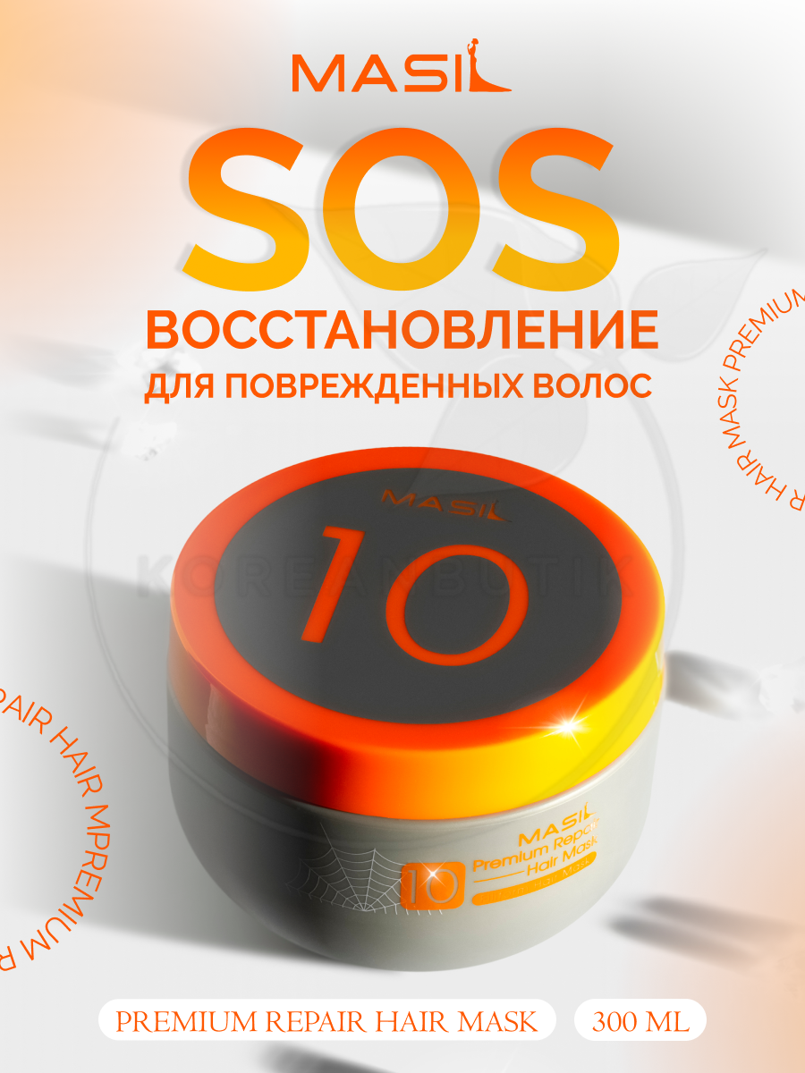 Корейская маска для волос профессиональная, восстанавливающая Masil 10 Premium Repair Hair Mask, 300 мл