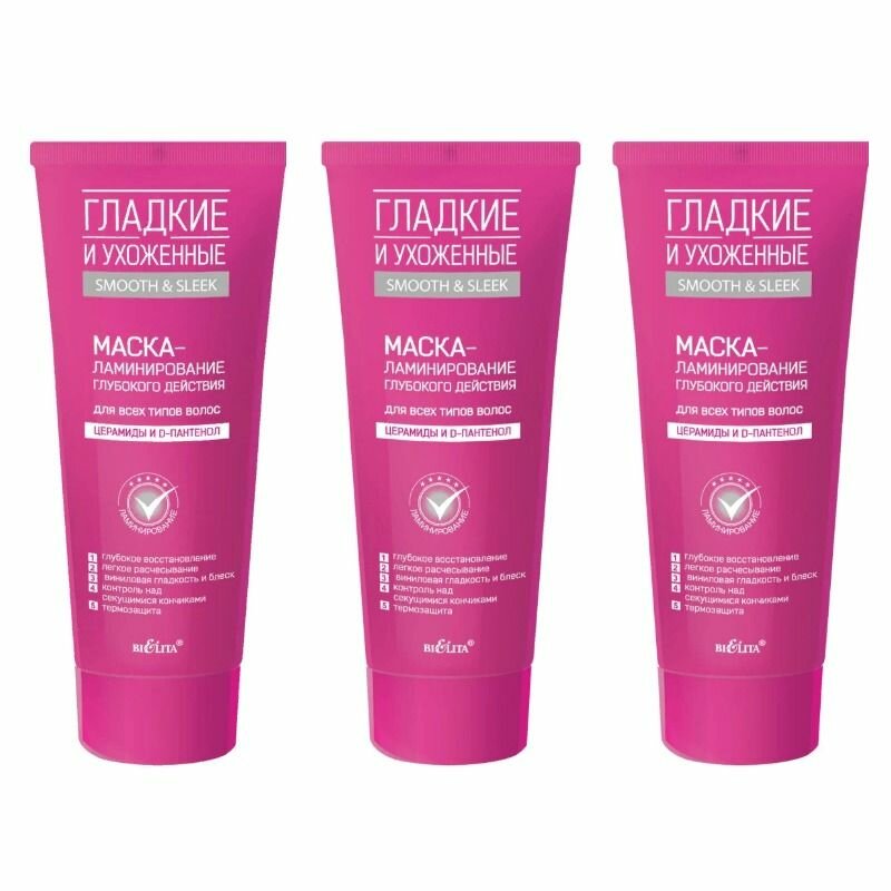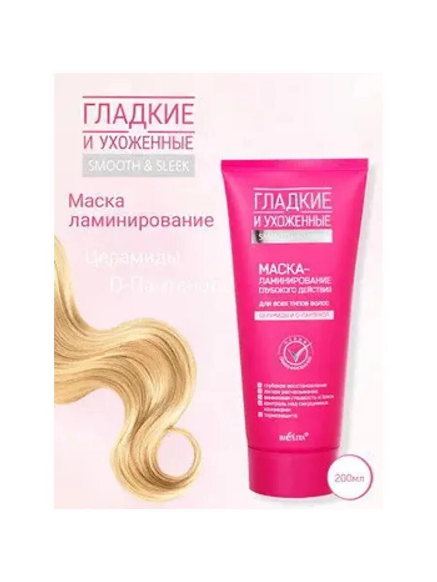 Маска-ламинирование глубокого действия, для всех типов волос, Гладкие и ухоженные, 200 мл, Белита