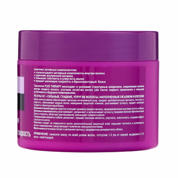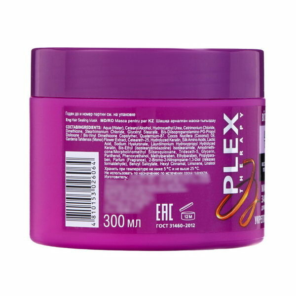 | Способ применения | Нанесите маску по всей длине волос, отступив 1-2 см от корней, выдержите 5-10 минут, тщательно промойте волосы водой. Для достижения максимального эффекта маска должна наноситься на волосы, предварительно обработанные сывороткой линии PLEX THERAPY Шоковая терапи |