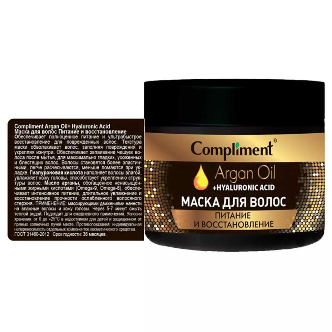 Купить Маска для волос Compliment Argan Oil+Hyaluronic Acid Питание и восстановление 300мл