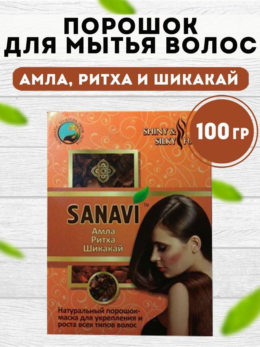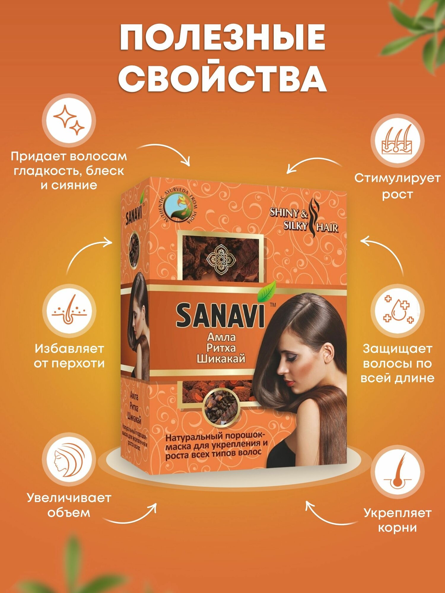 Купить Маска порошок Sanavi Амла, Ритха, Шикакай натуральная для укрепления и роста всех типов волос, 100 г