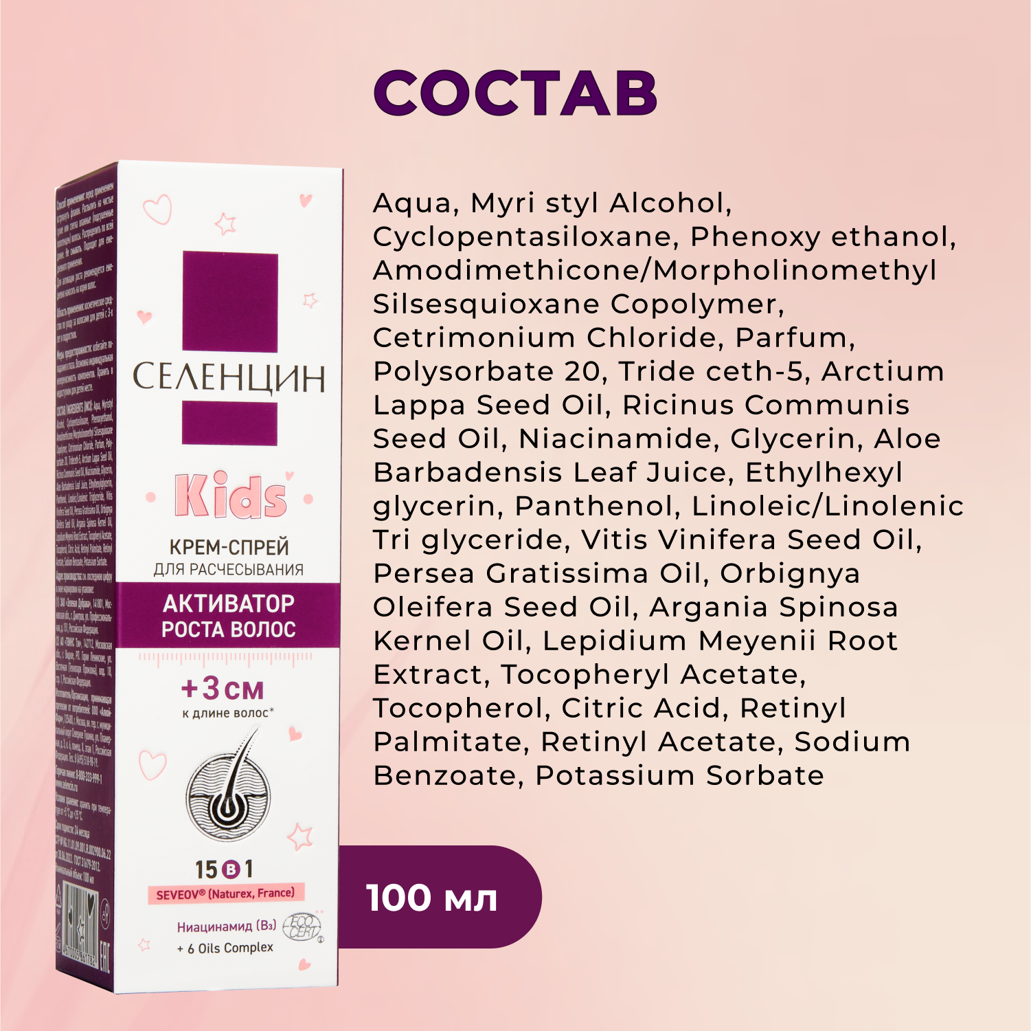 Селенцин Kids крем-спрей для детей 15в1 активатор роста волос интересное: