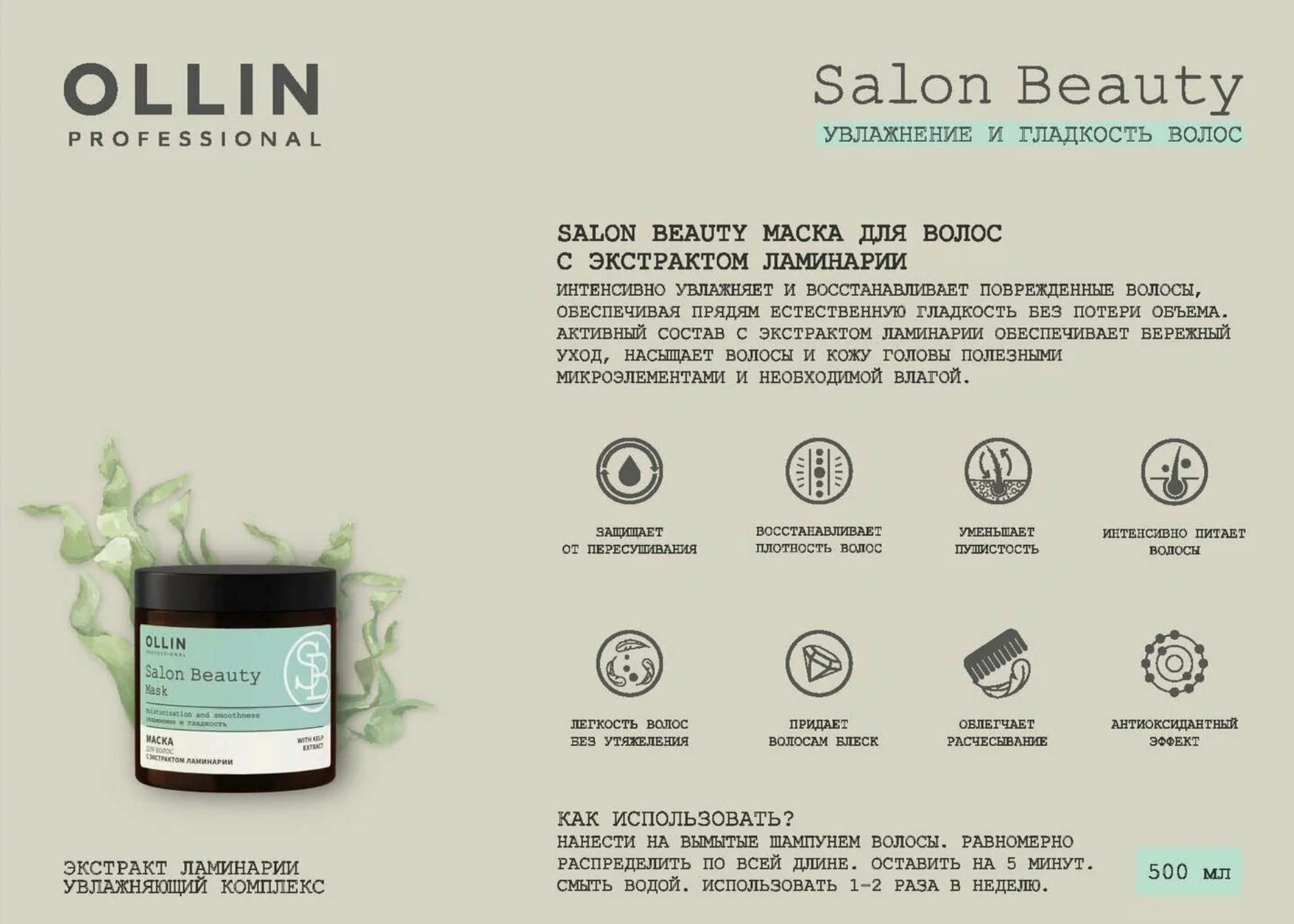 Маска для волос Ollin "Professional", Salon Beauty, с экстрактом ламинарии, 500 мл (773182)