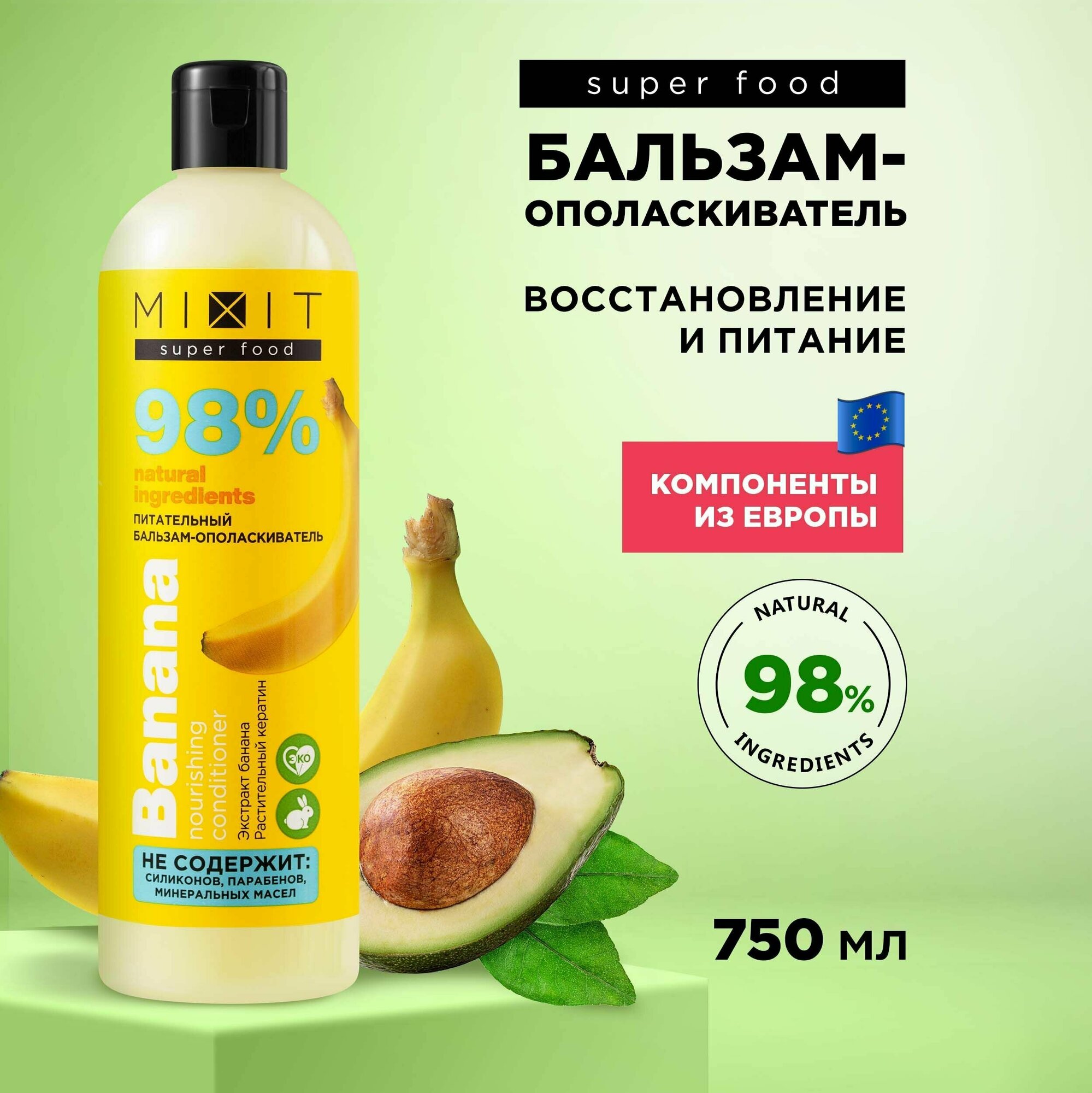Питательный бальзам ополаскиватель для сияния волос с экстрактом банана SUPER FOOD MixitSF, 750 мл интересное: