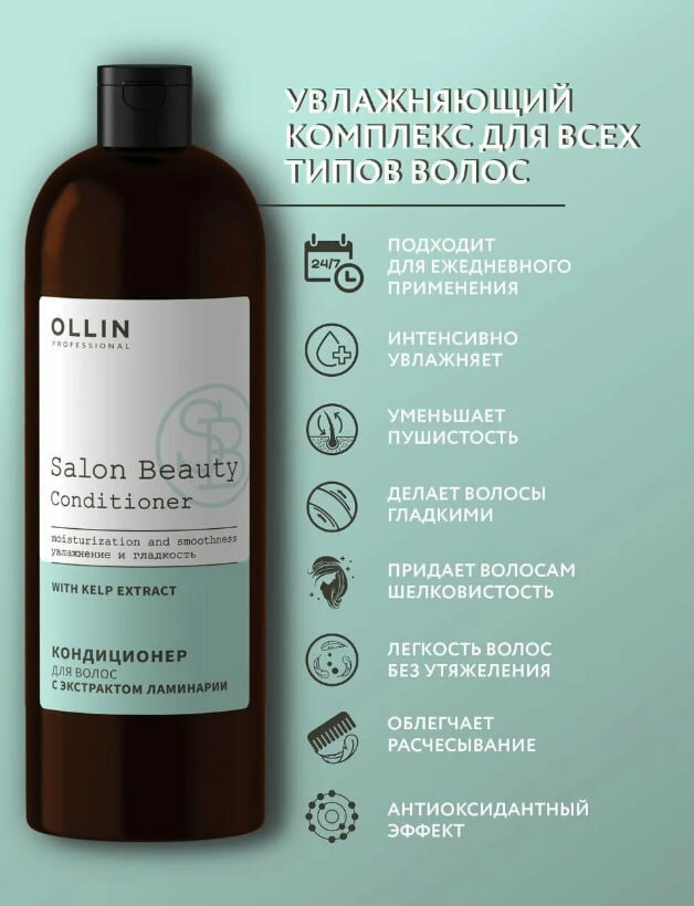 Ollin Salon Beauty Кондиционер для увлажнения и гладкости волос с экстрактом ламинарии, 1000 мл