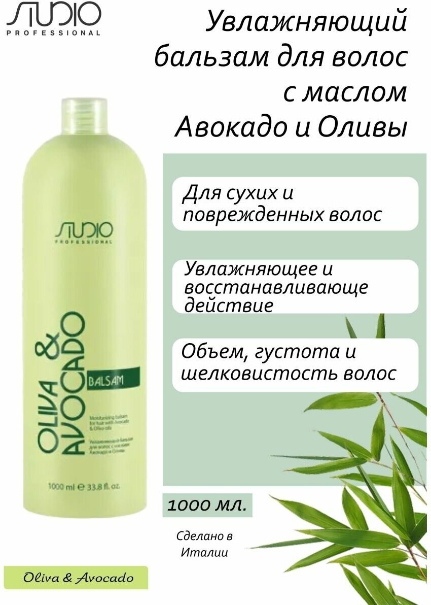 Бальзам увлажняющий для волос с маслами авокадо и оливы Kapous Professional Studio Olive and Avocado 1000 мл