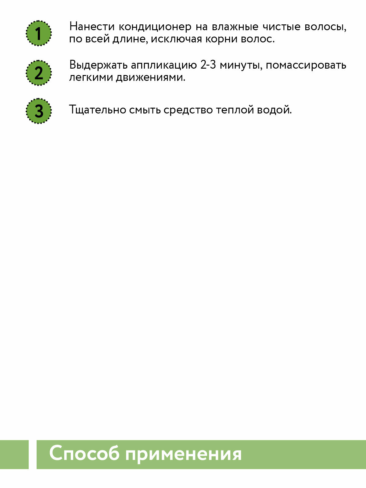 | Способ применения | нанести на влажные чистые волосы по всей длине, исключая корни волос, выдержать 2-3 минуты, тщательно смыть средство теплой водой |