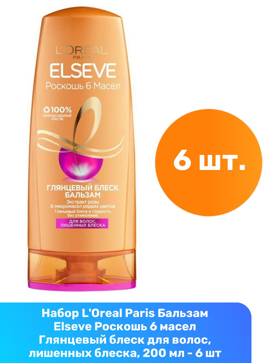 Купить L'Oreal Paris Бальзам Elseve Роскошь 6 масел Глянцевый блеск для волос, лишенных блеска, 200 мл - 6 шт