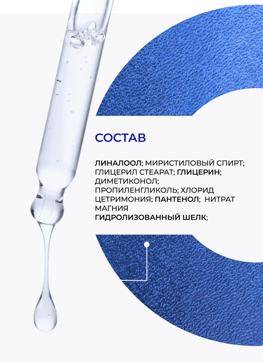 | Активный ингредиент | гидролизованный шелк / глицерин / комплекс витаминов / лимонная кислота / пантенол / протеины / протеины пшеницы |