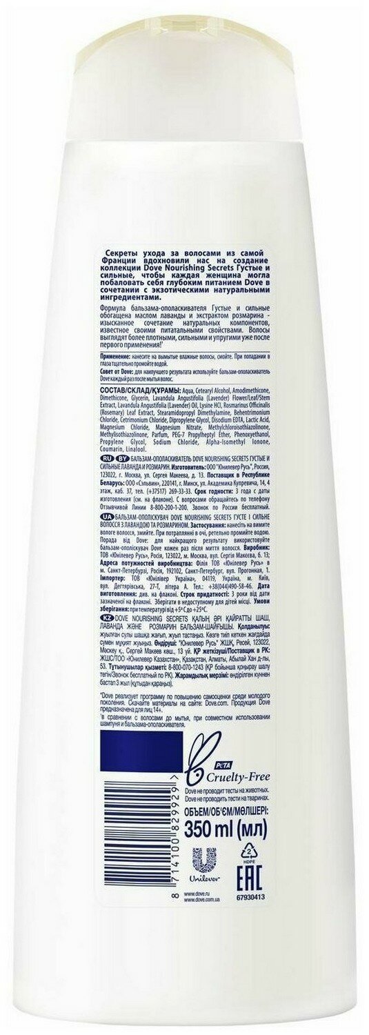 Бальзам-ополаскиватель Dove Nourishing Secrets густые и сильные лаванда и розмарин, 350 мл