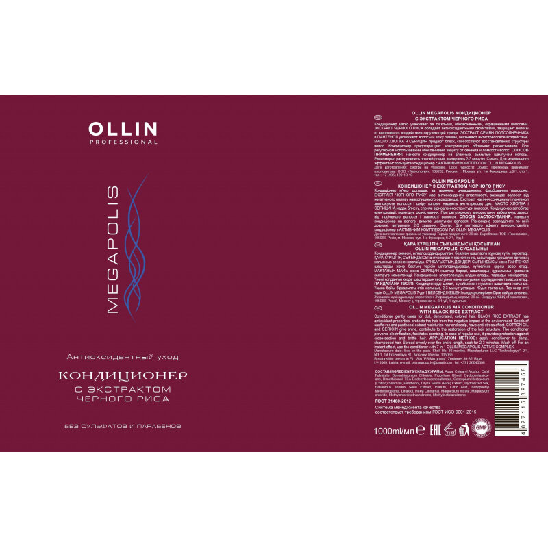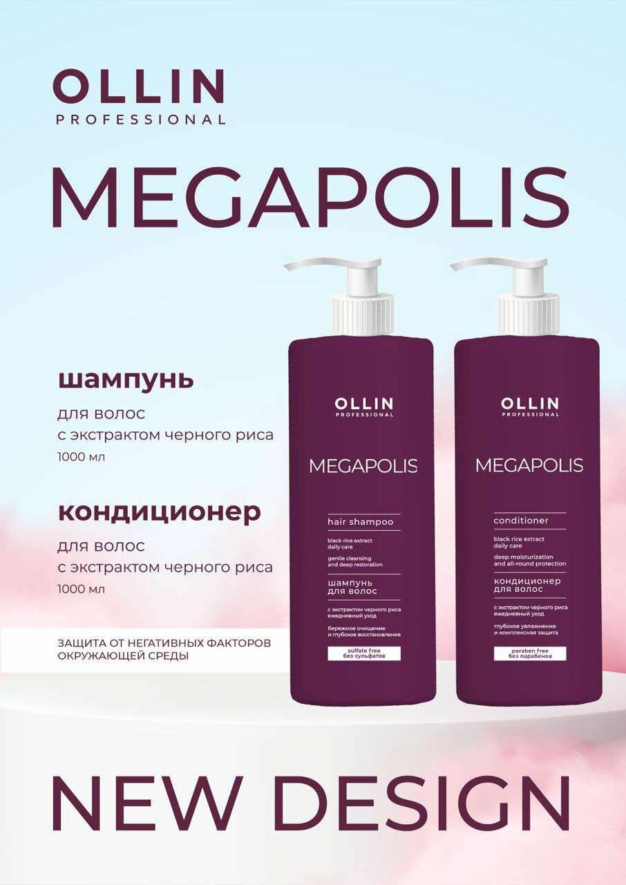 OLLIN MEGAPOLIS Кондиционер с экстрактом черного риса 1000мл (без сульфатов и парабенов)