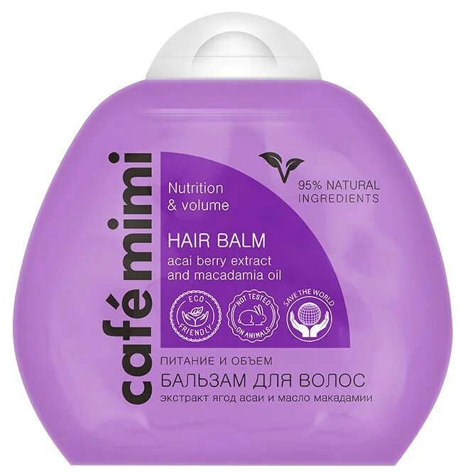 Cafe mimi Бальзам для волос Питание и объем Экстракт ягоды асаи и масло макадамия 100 мл дой-пак интересное: