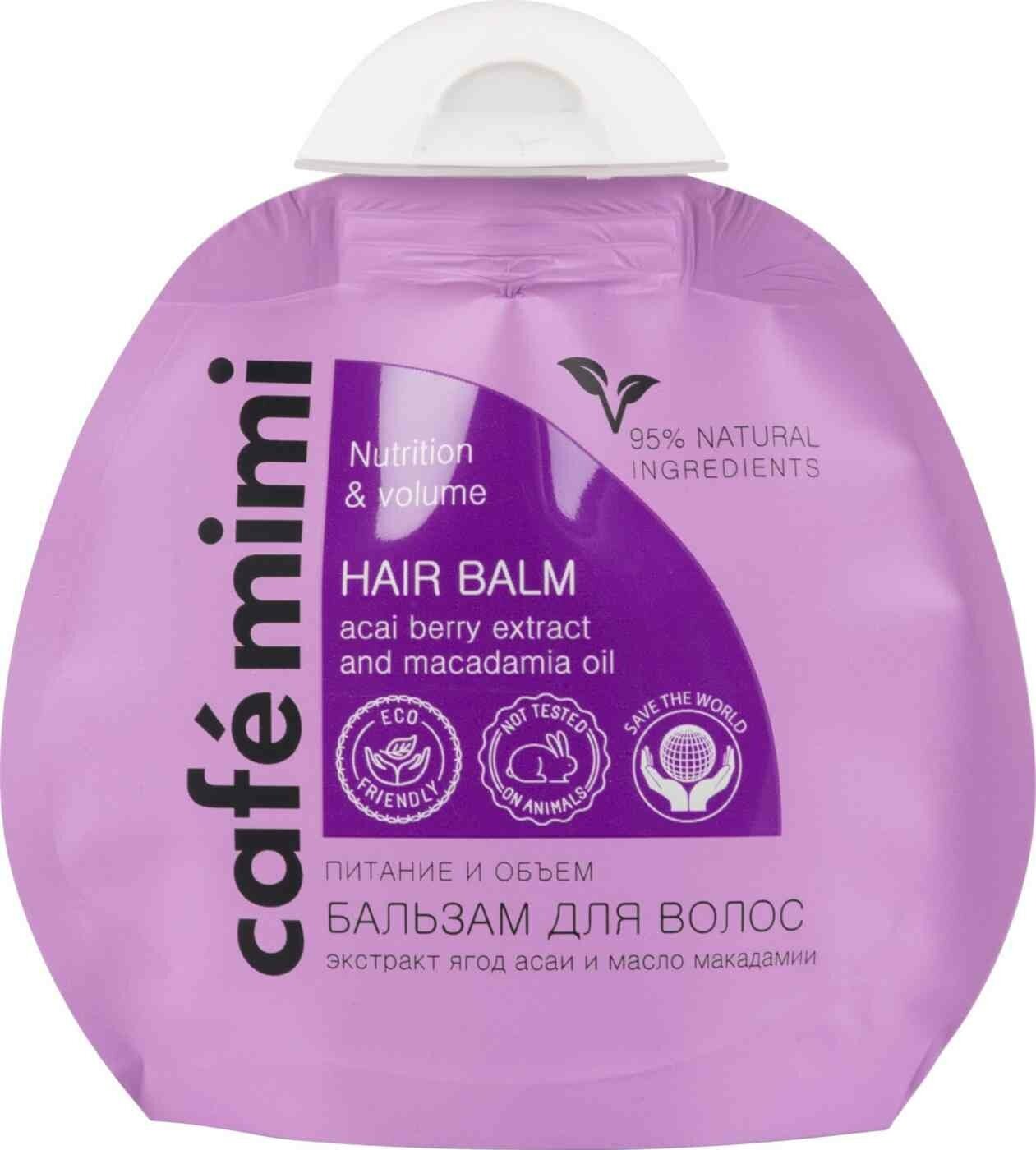 Купить Cafe mimi Бальзам для волос Питание и объем Экстракт ягоды асаи и масло макадамия 100 мл дой-пак