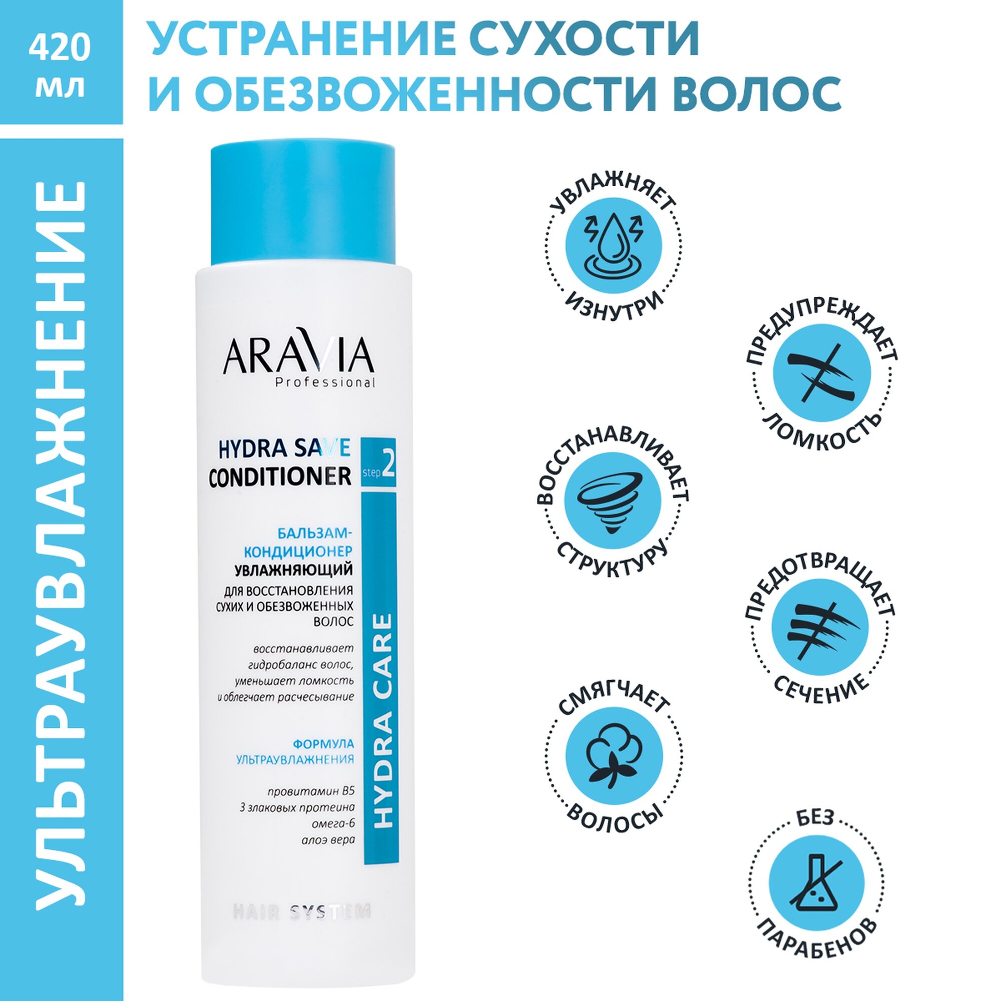 ARAVIA Бальзам-кондиционер увлажняющий для восстановления сухих, обезвоженных волос Hydra Save Conditioner, 420 мл. интересное: