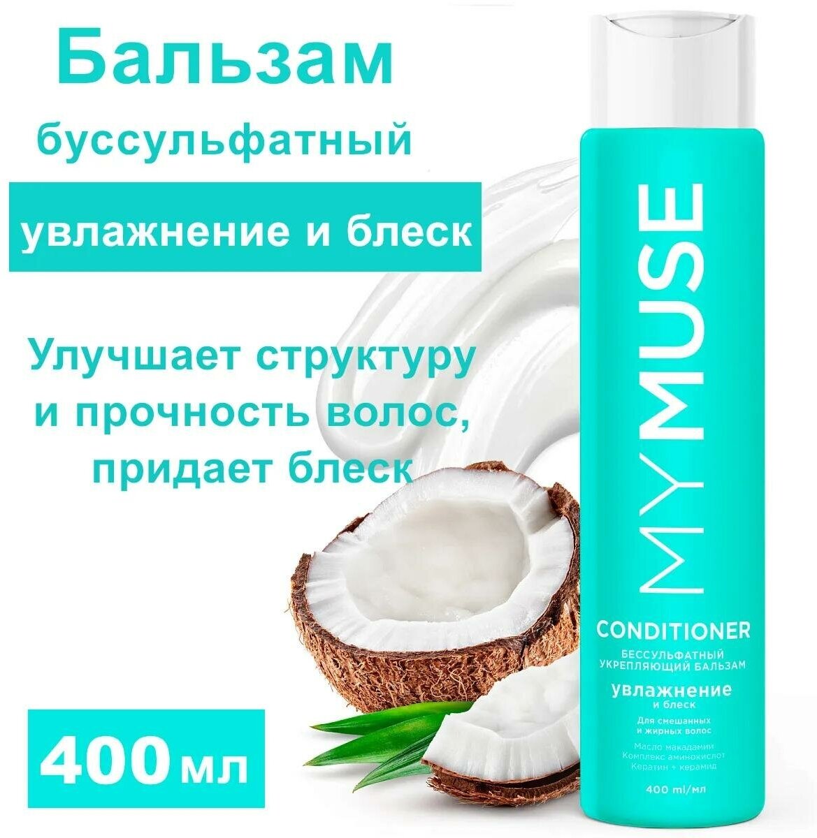 Купить Бальзам для волос MYMUSE беcсульфатный, укрепляющий, 400 мл