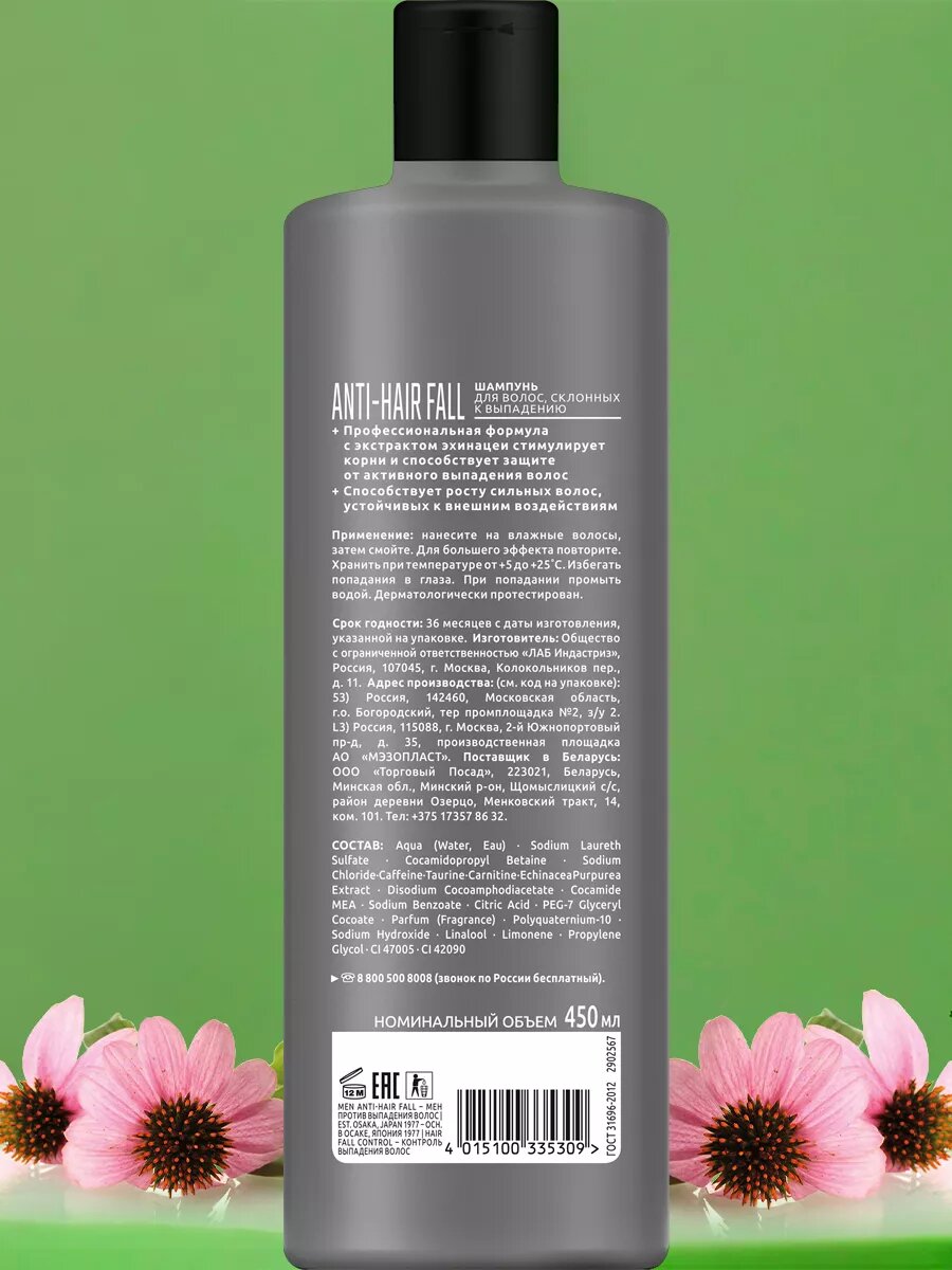 Сьесс Шампунь мужской Anti-Hair Fall для волос, склонных к выпадению, зашита от выпадения, 450 мл 3 шт