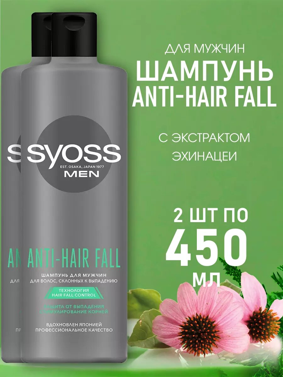 Купить Syoss Шампунь Men Anti-Hair Fall для волос, склонных к выпадению, 450 мл, 2 шт.