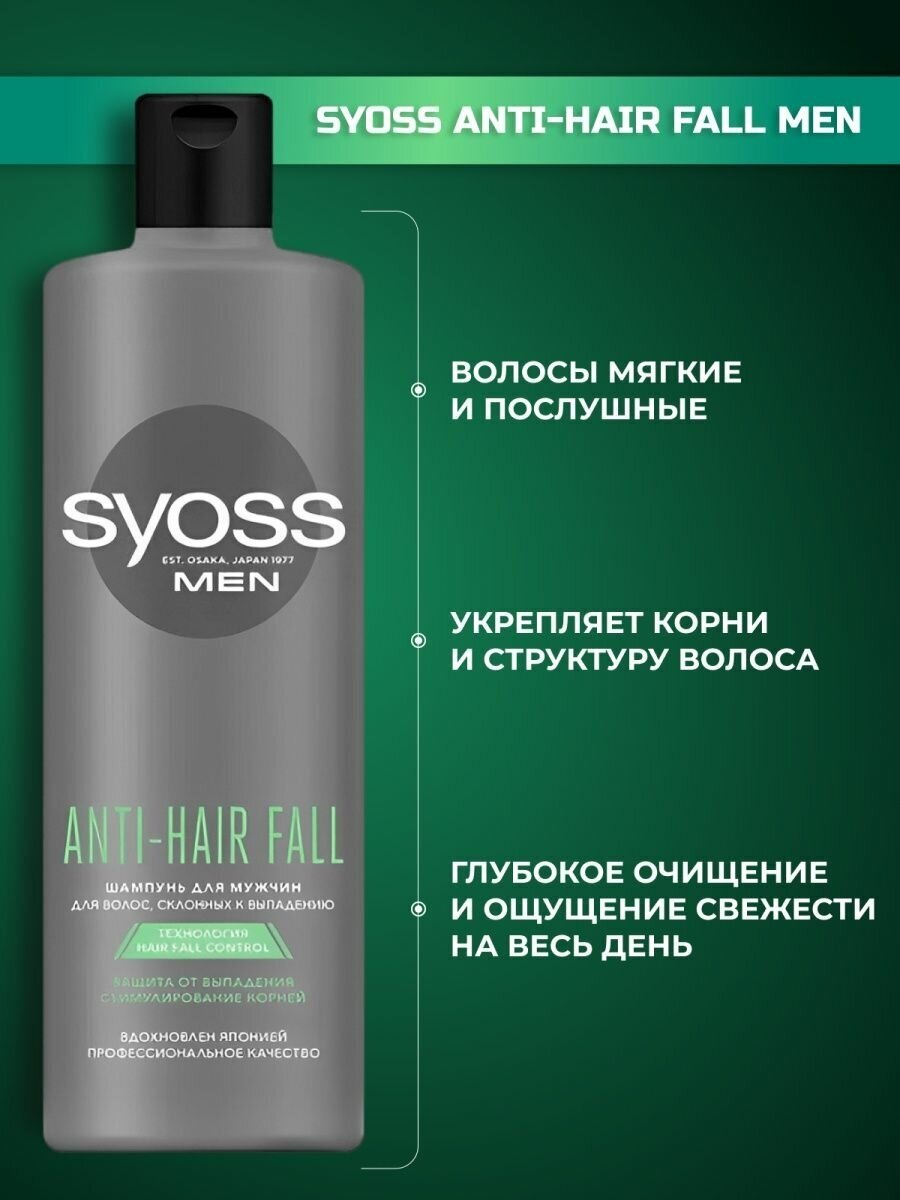 Купить Syoss Шампунь Men Anti-Hair Fall для волос, склонных к выпадению, 450 мл, 3 шт.