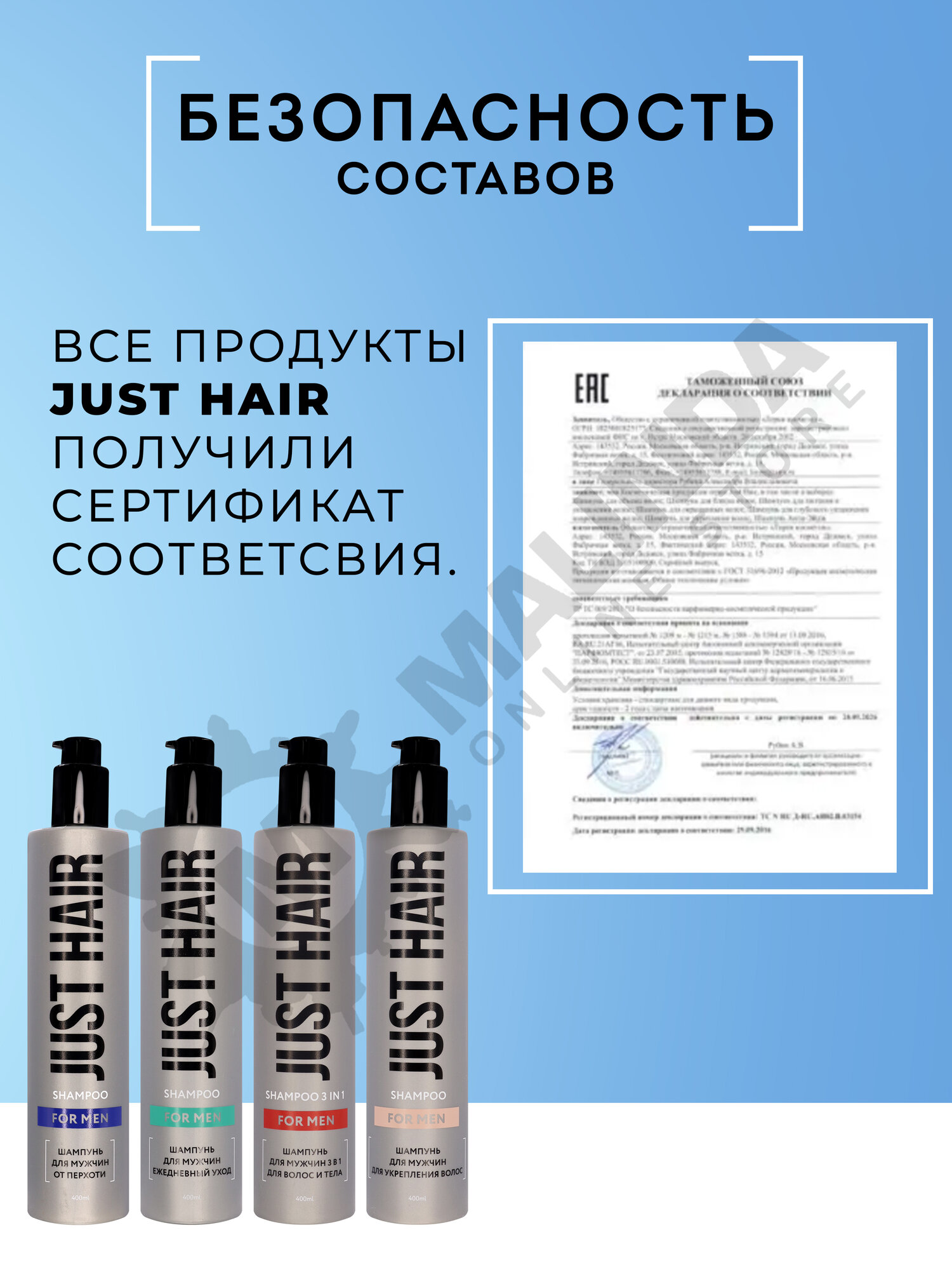 JUST HAIR Шампунь для мужчин ежедневный уход FOR MEN, 400 мл