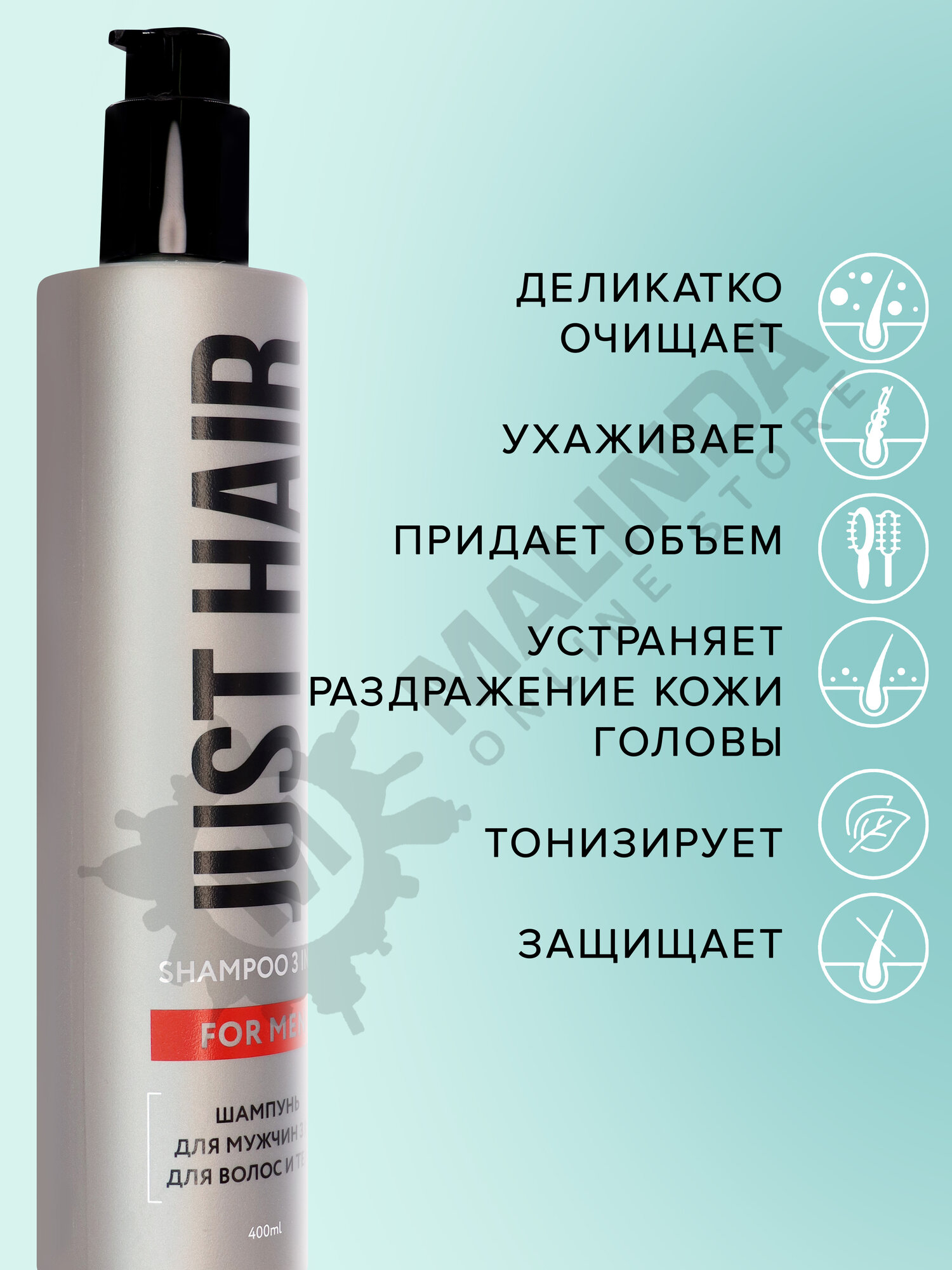 Купить JUST HAIR Шампунь для мужчин 3 в 1 для волос и тела 400 мл