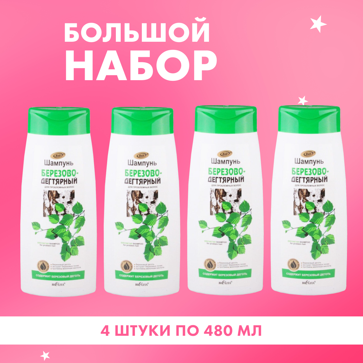 Купить Шампунь Белита для жирных волос Березово дегтярный 4 шт по 480 мл