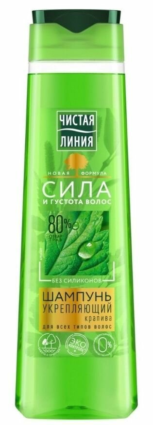 Чистая Линия шампунь укрепляющий сила и густота для всех типов волос с экстрактом крапивы, без силиконов 400 мл