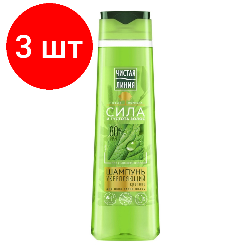 Шампунь Чистая Линия Укрепляющий, крапива, 400 мл, 3 шт.