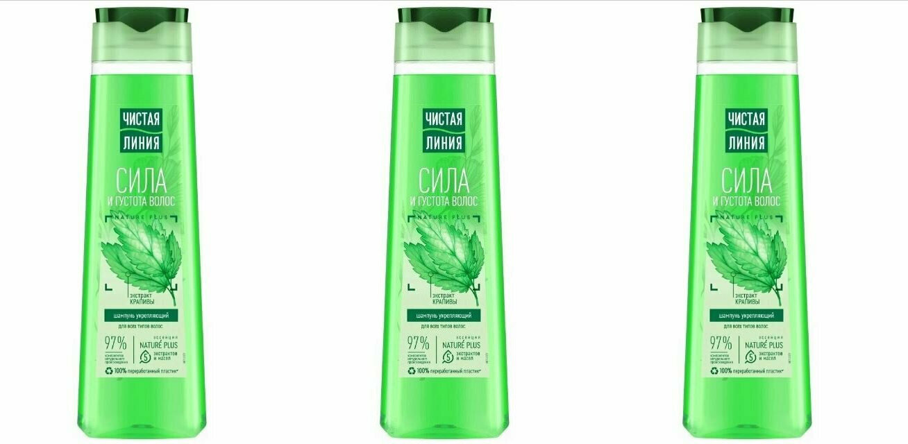 Чистая Линия Шампунь Укрепляющий, для всех типов волос, Крапива, 400 мл, 3 шт