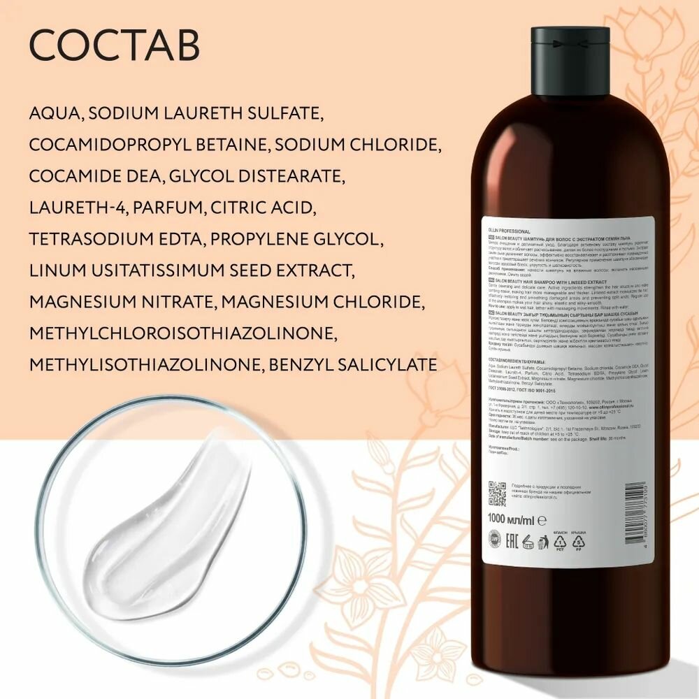 Шампунь для волос с экстрактом семян льна 1000 мл SALON BEAUTY