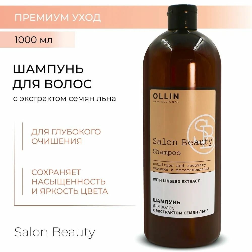 Шампунь OLLIN SALON BEAUTY, с экстрактом семян льна, для всех типов волос, 1000мл