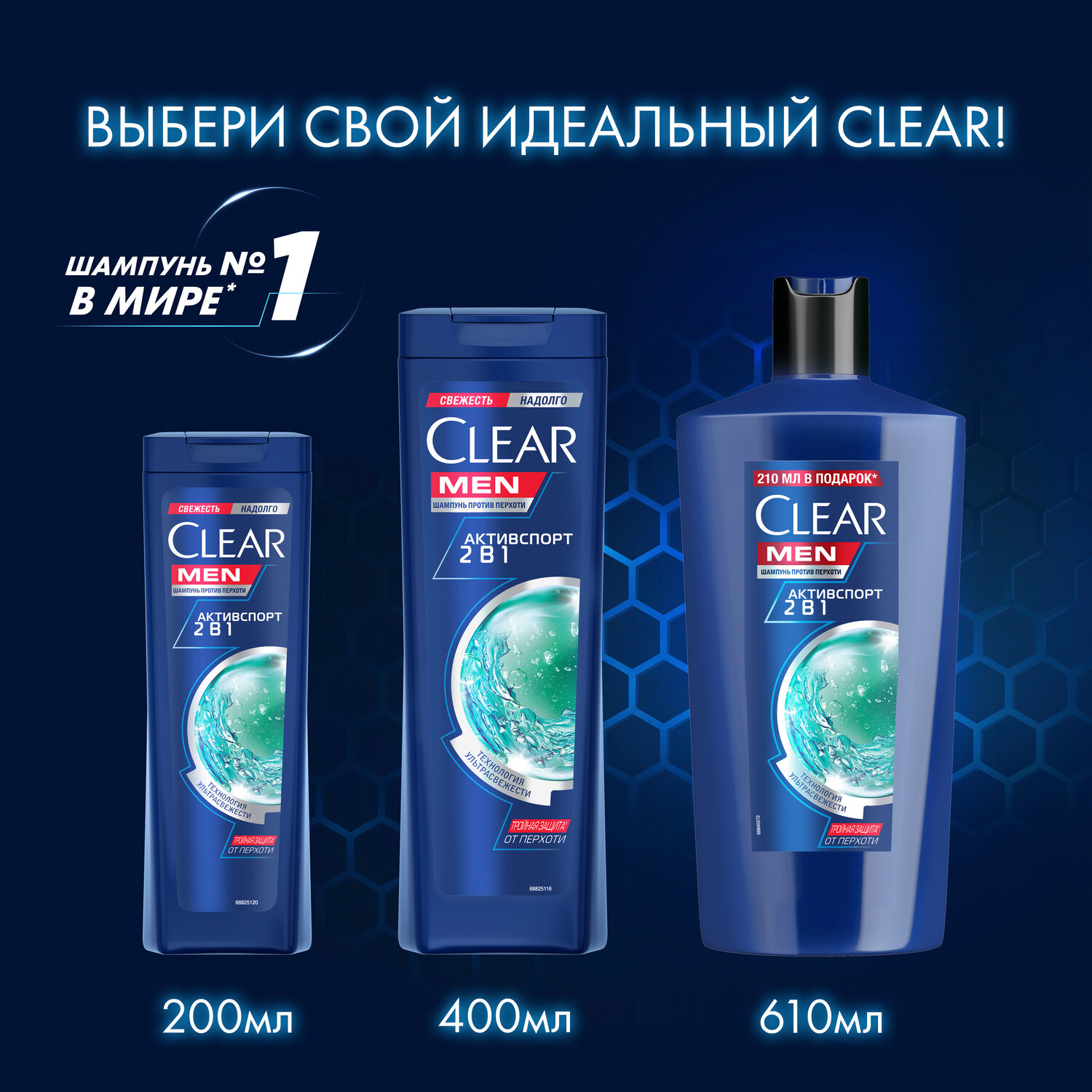 Шампунь 2в1 Clear Men Активспорт, 610 мл