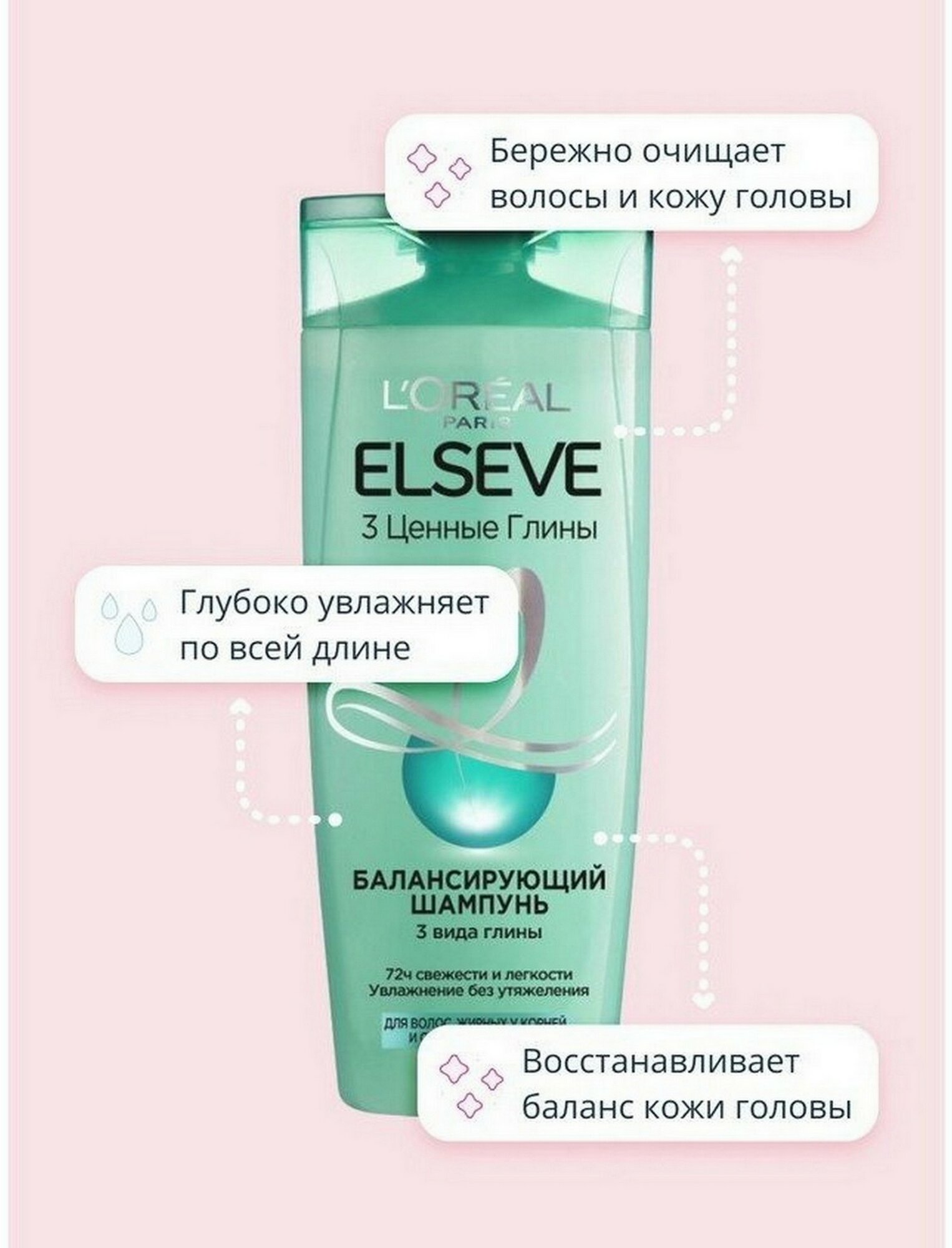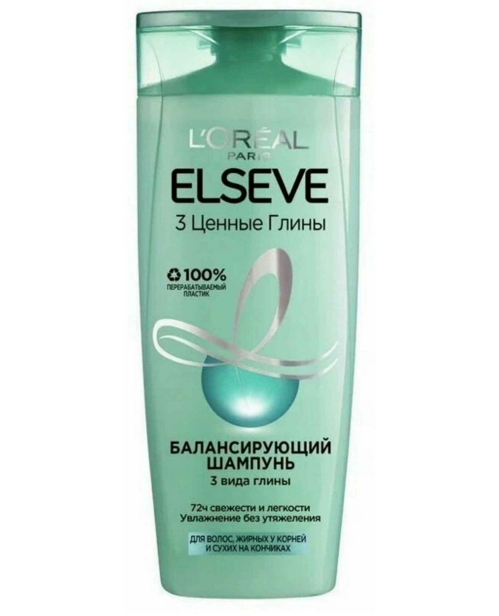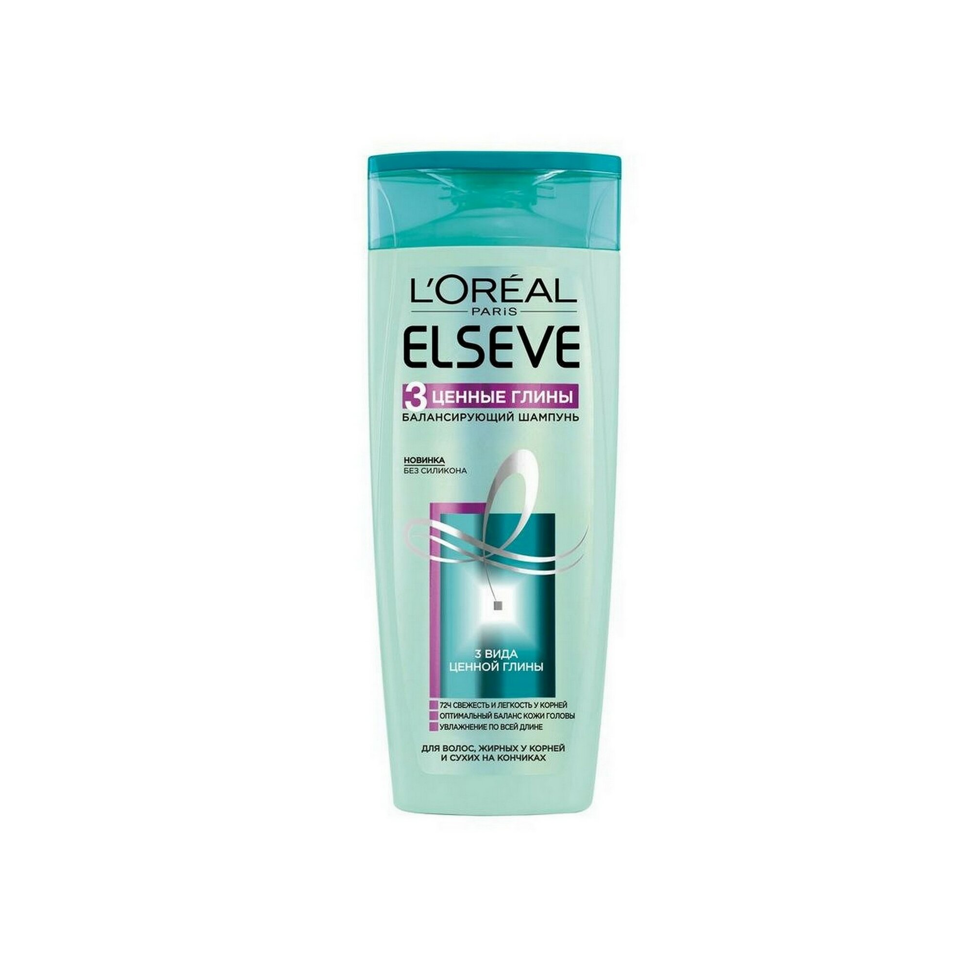 Elseve Балансирующий шампунь 3 Ценные Глины для волос, жирных у корней и сухих на кончиках без силикона, 400 мл